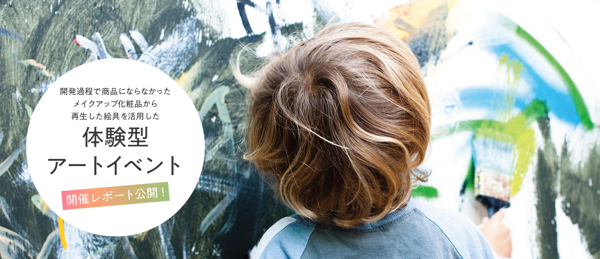 商品にならなかったメイクアップ化粧品を再生した絵具をつかって、非日常な空間で、創造力を自由に羽ばたかせ、のびのびと絵を描く楽しさを実感できるスペシャルな体験を提供します。