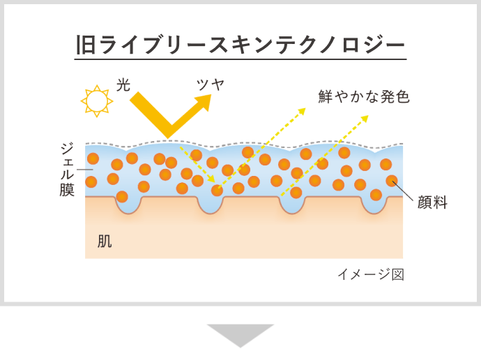 カバー素材の顔料で、素肌を隠ぺいしながらカバーするのではなく、光拡散性がアップした※2新カラーオイルと、ひと塗りで厚膜を形成する新透明ジェルの掛け合わせによるアプローチ。