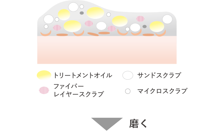 パーツごとに異なる角質悩みを一気に解決。大きさ、感触、崩壊タイミングが異なる3 種のスクラブを、バランスよく配合。
