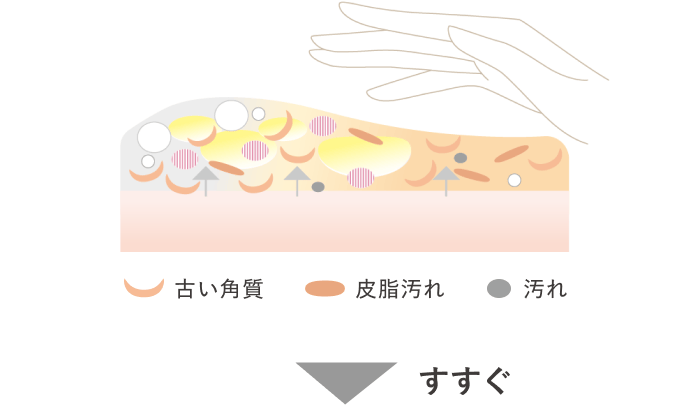 スクラブがやさしく肌に触れ、効率的に磨きながら、クリームがオイル状に変化することで、皮脂汚れにもアプローチ。
