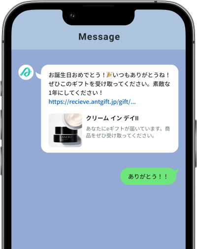 購入が完了すると、eギフトの受け取りURLが発行されます。LINEなど各SNSやメールでURLを伝えることでeギフトを贈ることができます。
