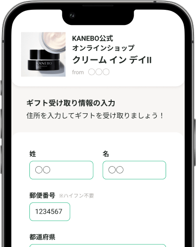 届いたURLをタップすると受け取り画面が表示されます。「eギフトを受け取る」 をタップしてお届け先情報の入力に進みます。