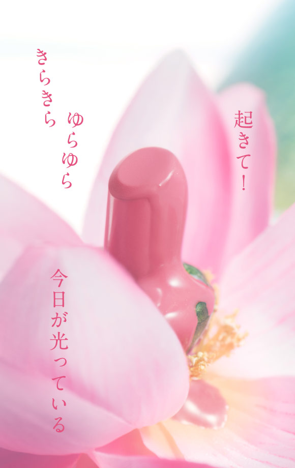 赤を鮮やかに発色させる鮮紅色パールを含む「5Rヴァイブラントベース」が肌に溶け込むようになじみ、