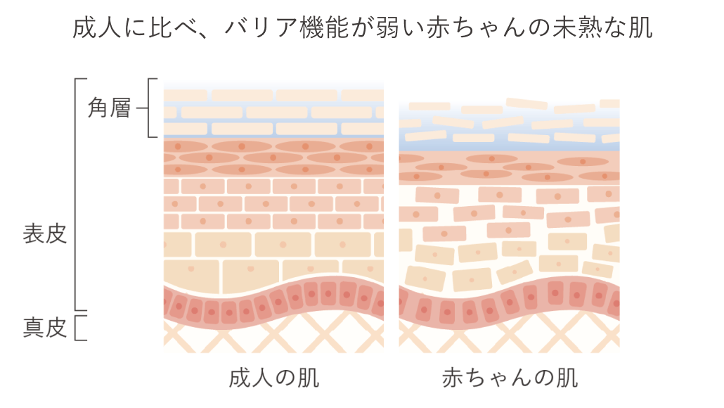 赤ちゃんの皮膚の厚さは成人の約半分ほど。