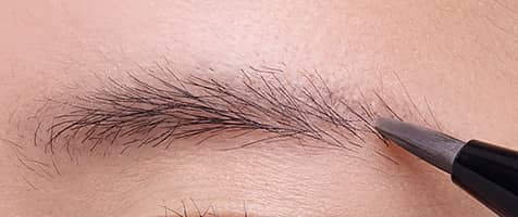 眉頭は、中央から眉頭に向かって、幅広い面で描きます。