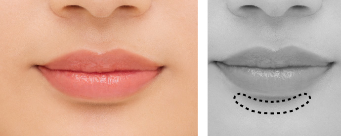 唇の下に塗布することで唇をふっくらと立体的にみせる。