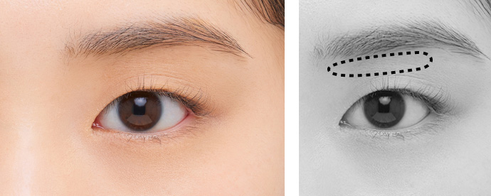 眉下に入れることで目と眉の距離を短くみせ、彫りの深い顔だち印象に。